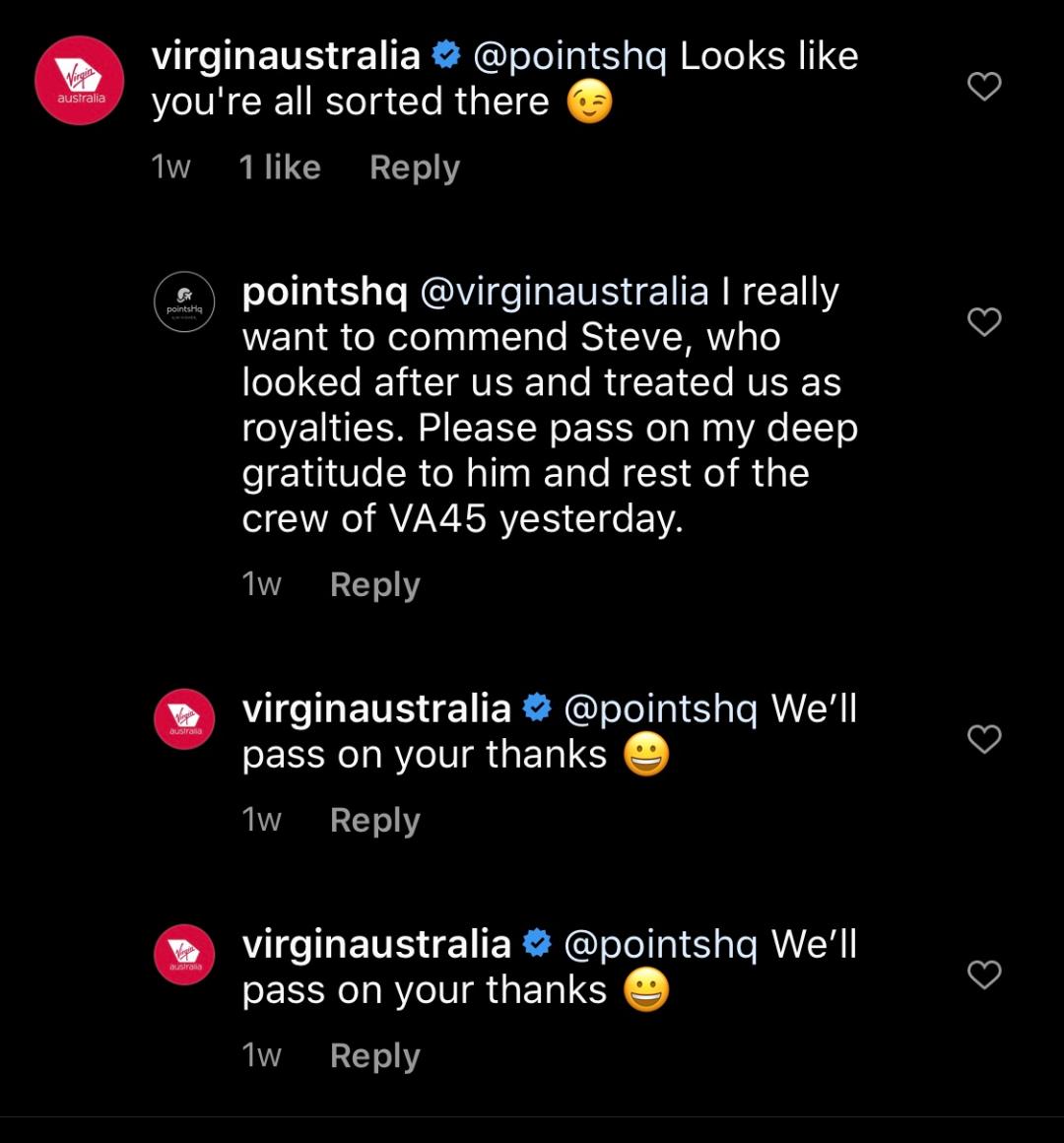 I could go on, but in short, the standards set by Steve is what every person working in the service industry ought to strive for. In my opinion, he is a real asset to Virgin Australia and the airline should count itself lucky to have him on their pay-roll. Far too often, the hard work of airline crew goes unrecognised, but on this occasion I made it a point to post about it on my Instagram and Twitter account.